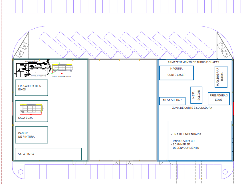 O edifício da AxiomStrategy está dividido em 3 zonas, de forma a automatizar areas específicas de produção, sendo a área de montagem passível aumentar ou dimunuir consoante necessário